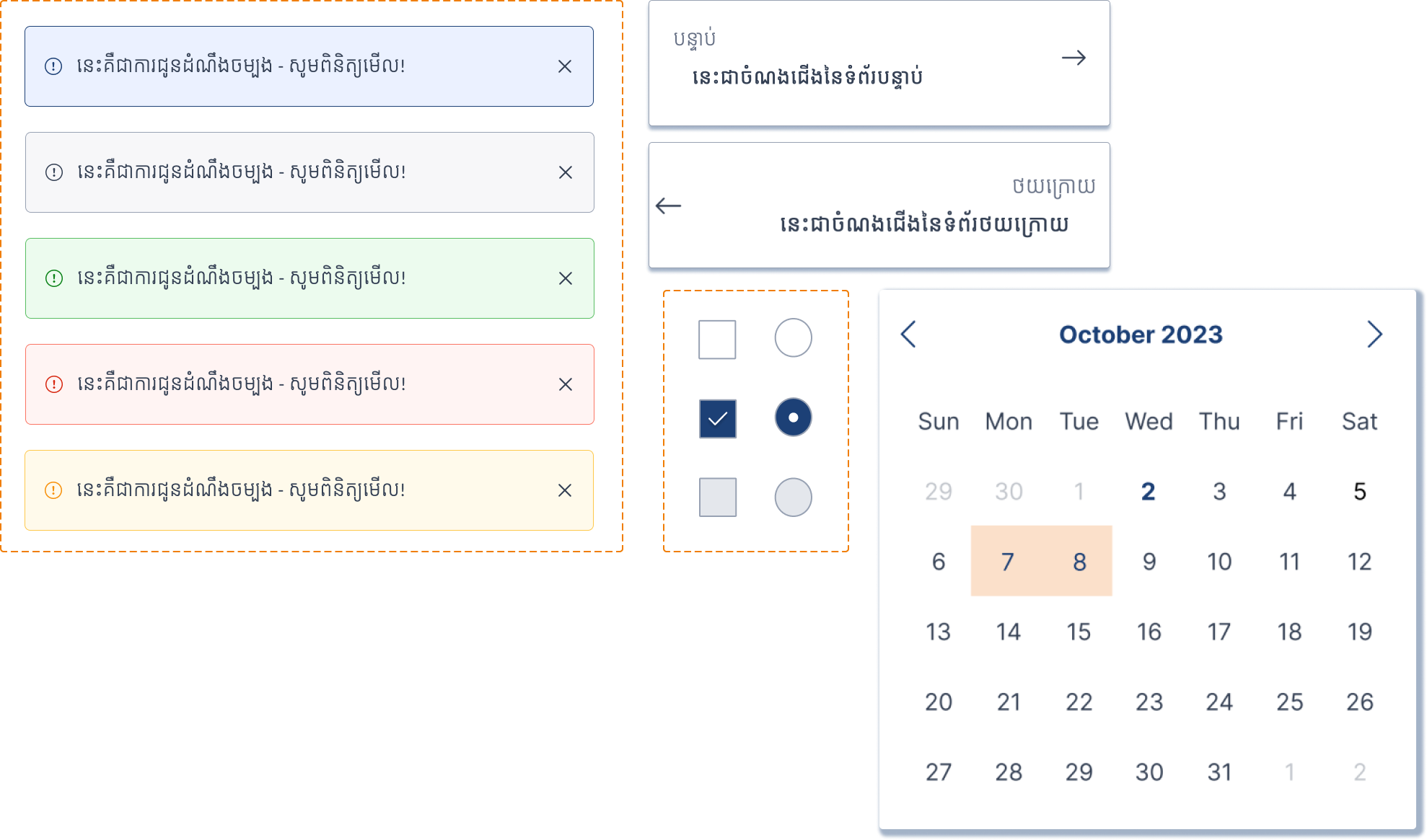 សមាសភាគរបស់យើងអនុលោមតាមគោលការណ៍ WCAG។